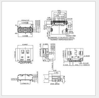 Boîtier de prise USB Type-C 16 broches SMT à quatre broches : avec ressort, L 7,35