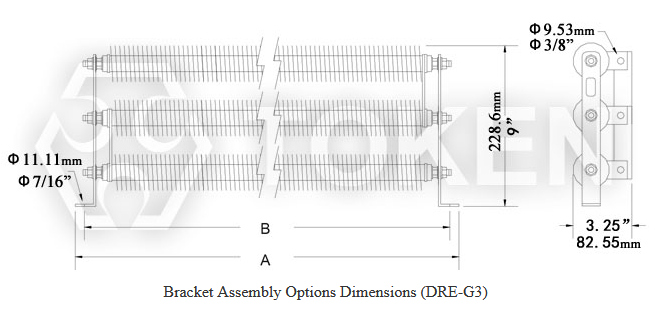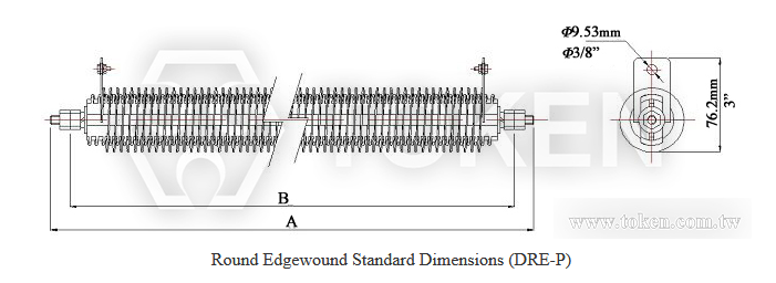 Token Electronics DRE round edgewound resistor is a versatile, heavy-duty component featuring a lightweight design. It is constructed from a high-quality, corrosion-resistant stainless steel alloy. DRE resistor includes through-rods, through-bars, fixed terminals, hardware and stainless steel resistive element. It is supported by a mounting bar slotted at both ends. Fixed terminations are achieved by welding stainless steel tabs to either end of the element, or at various points along its length to allow for multiple connections. The ribbon-like element is edgewound into a helical shape and then mounted onto a porcelain core, with a threaded rod running through the center of the ceramic body. Token DRE series is available in many mounting configurations such as stud-mount versions, universal edgewound designs, and mounting bracket options compatible with Vishay or Ohmite style. A wide range of standard hardware options allows the resistors to be supplied fully assembled, allowing easy integration into the final system. Assemblies can be wired in parallel or in series to meet specific application requirements. Terminal blocks and thermal switches are also available.